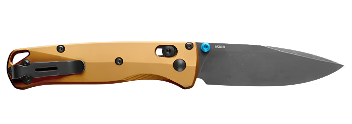 For those looking for an elevated variant of the outdoor adventurer’s go-to EDC called the Bugout®, look no further than the premium 535BK-07. Keeping with the slim yet ergonomic profile of the Bugout® while advancing the materials, the handsome new 535BK-07 dons eye-catching Burnt Brass anodized 6061-T6 aluminum handle scales and a premium M390 stainless steel blade with a black DLC battlewash finish. Sprinkle in some tasteful color — a its turquoise anodized thumb stud and barrel spacer — and the 535BK-07 is the Bugout® that looks and performs just as brilliantly around the campsite as it does carried in dress up mode.