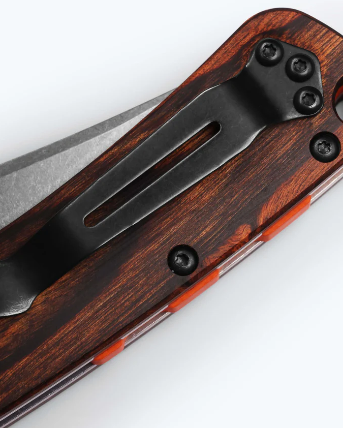 Classic style meets cutting-edge performance. The Crooked River sets the bar high for modern re-interpretations of traditional knife design by combining the instantly-recognizable clip-point profile of western hunting knives with precision-manufactured components. Featuring CPM-S30V blade steel, grey aluminum bolsters, hi-vis orange accents, and stabilized wood handle scales, the Crooked River pushes the preconceived notions of what a hunting knife should be.