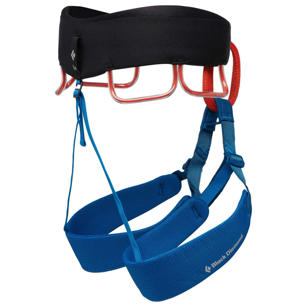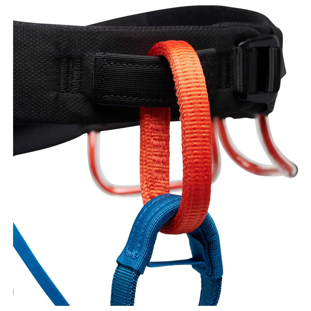 The Momentum Harness provides a time-saving design for all styles of climbing adventures year around. It features a pre-threaded Speed Adjust waistbelt buckle that saves time and eliminates error when tying in, trakFIT™ leg loops for time-saving custom adjustments, Dual Core Construction™ waistbelt for all-day comfort and four pressure-moulded gear loops and a haul loop for great racking space.