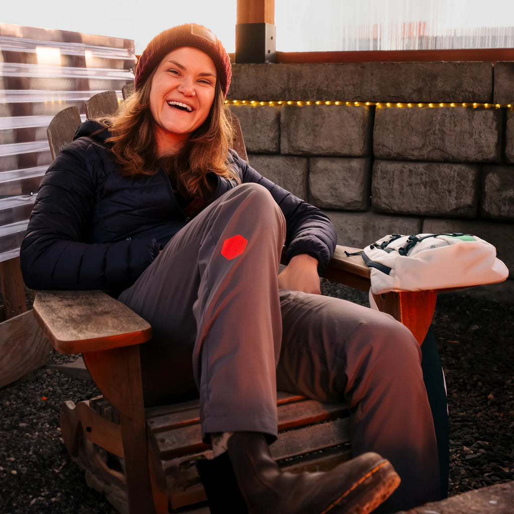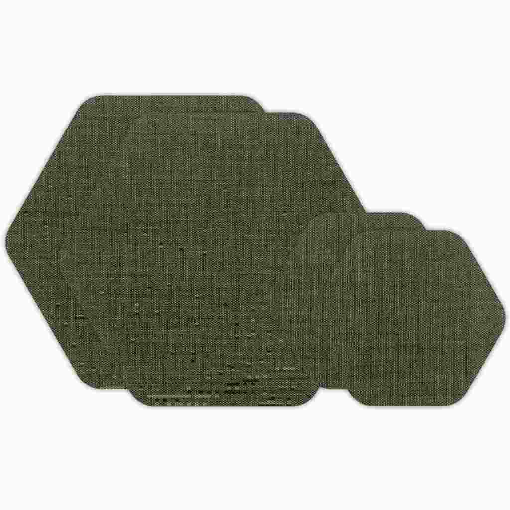 Signature hex-shaped patches for rips and tears in outdoor gear and outerwear.