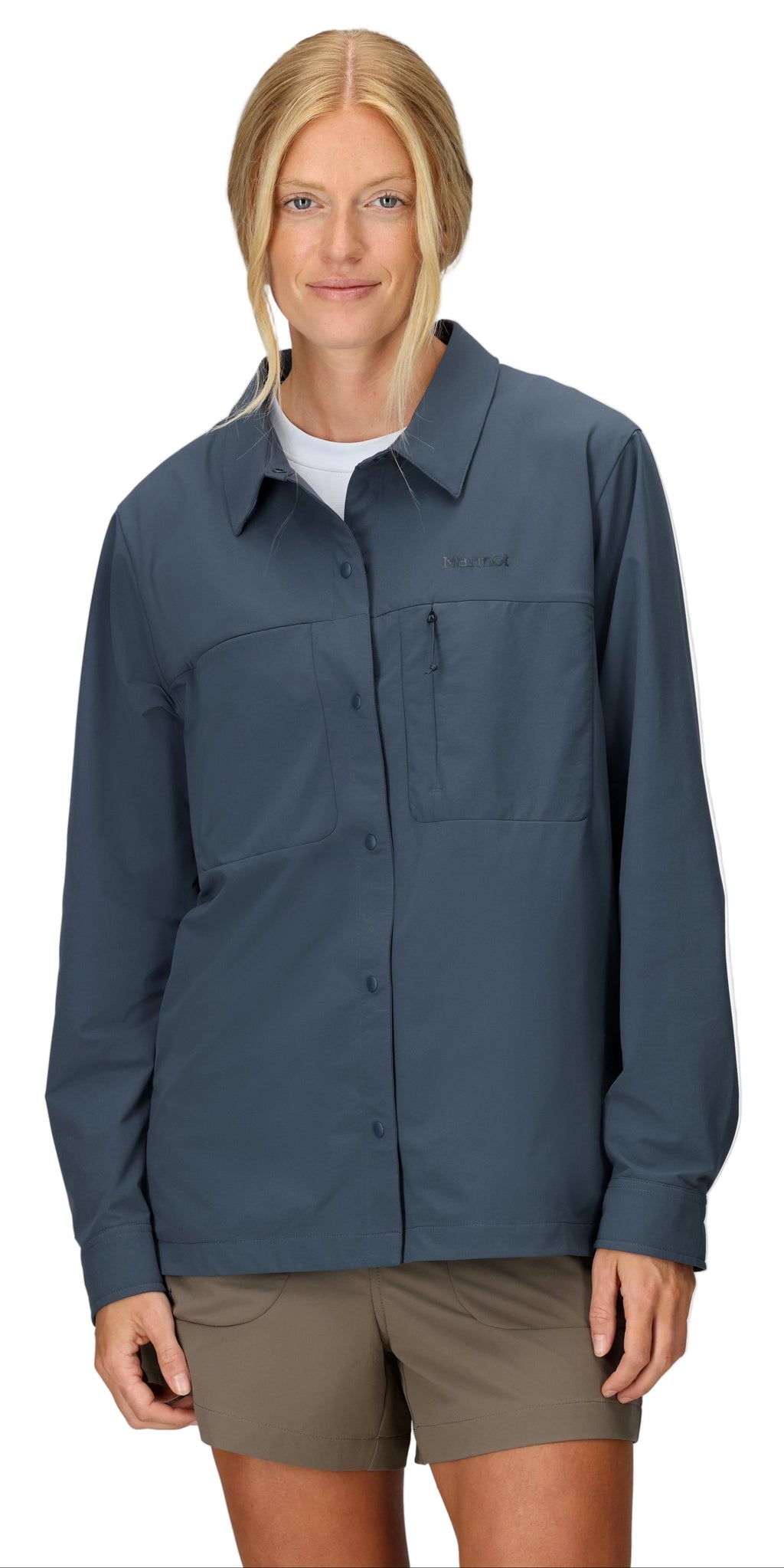 This lightweight, airy button-up with UPF 40 offers layer-friendly comfort for long days in the sun. The AirExchange performance fabric is breathable, quick-drying and sweat-wicking, so you can relax by the lake or venture into new terrain. When the sun comes out, you can rely on the UPF 40 to protect you from harmful UV rays and fold up the adjustable collar for extra neck protection. A multi-day backpacking trip, an all-day fishing trip or a weekend camping trip? This overshirt is ready for action. The dropped shoulders and abrasion-resistant seams keep you comfortable and mobile under the weight of your rucksack or backpack sling. Two chest pockets - one zippered, one with VELCRO® - let you stash a snack for the trail or your phone for a summit selfie.