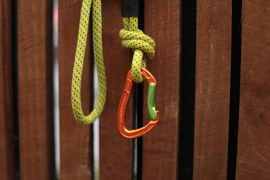 The carabiner where you connect the lead to your furry friend is either a brand new rated climbing carabiner or regular swivel dog lead clip.