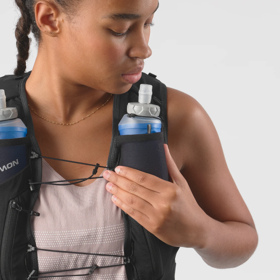 With easy-access hydration, an adjustable fit, generous storage capacity and multiple pockets, including a large tunnel one on the back. Plus, compression laces on the side.