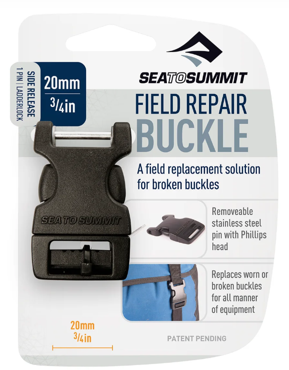 The Field Repair Buckle is designed to permanently repair broken buckles with just the help of a screwdriver. All Sea to Summit dry bags feature Field Repair Buckles, from the lightest Ultra-Sil Nano dry sack to the heaviest Hydraulic dry bag. Don't let a broken buckle ruin your adventure. Be prepared and carry a Field Repair Buckle in your repair kit.