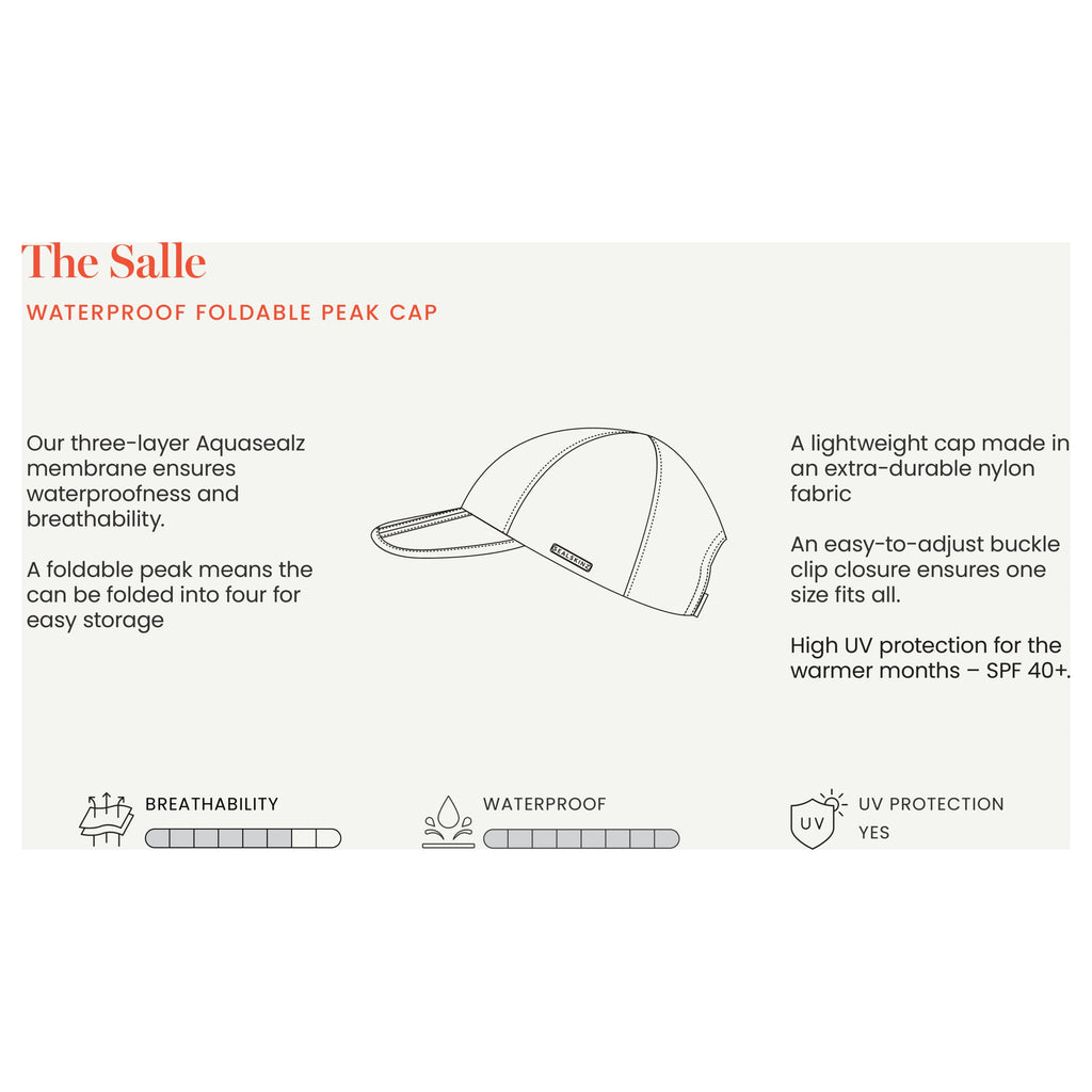 A light, foldable cap, in a durable soft brushed nylon fabric. Waterproof and packable, the Salle makes an ideal companion for long-distance, mixed-terrain expeditions. That said, it’s also at home in the city. UV Protection – all of our caps are SPF 40+.