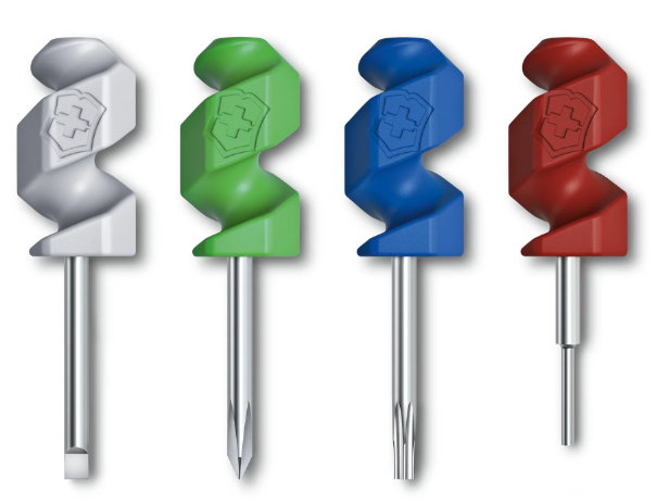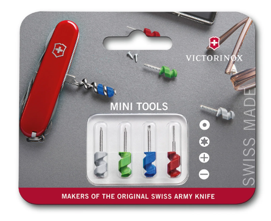 Need to adjust your glasses? Perhaps you’re fixing an electronic device, or doing some everyday fixing? Whatever tasks your day throws up, be prepared with our set featuring four compact Mini Tools. Cleverly designed to fit into your knife's corkscrew feature, these precision tools are always to hand. You choose from four different smart tools: a slotted tool to fix your glasses or sunglasses, two screwdrivers in different sizes, and a SIM card pin to change your smartphone SIM card. The perfect way to expand your knife’s features and give it an urban touch.