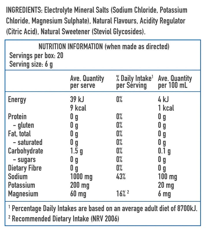 - 1000mg sodium 200mg potassium 60mg magnesium