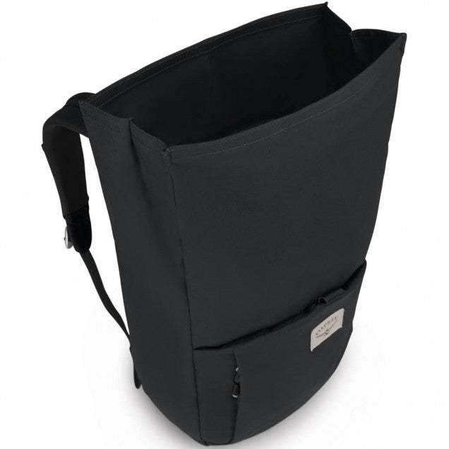 - Roll top main compartment opening with webbing and aluminum buckle closure