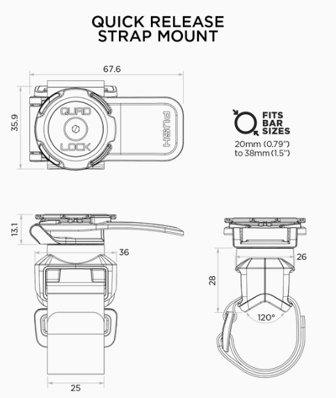 The textured anti-slip polyurethane strap means there are no tools required and you can secure your Quick Release Strap Mount to a variety of handles.