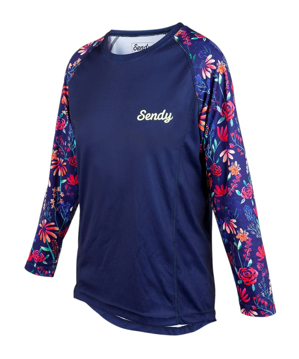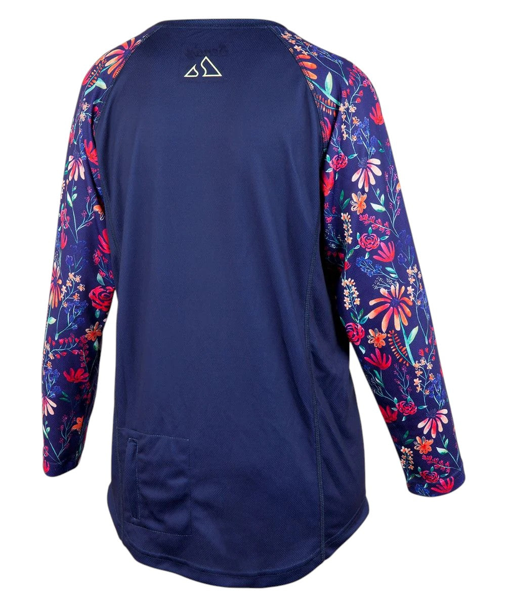 Inspired by alpine wildflowers, but built to last through the seasons, get this super fun and colourful long sleeved MTB jersey.