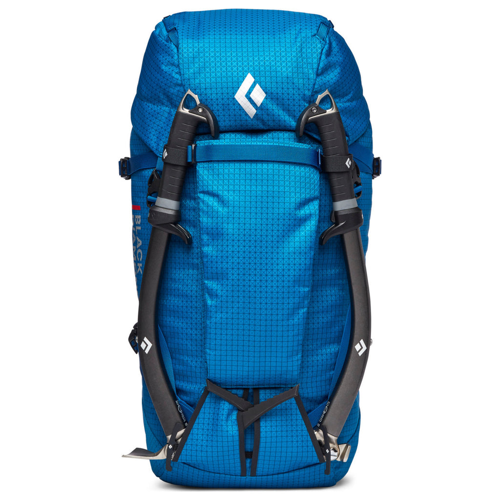 Featuring an updated BD X-rip 420d fabric with UTS™ coating, these packs are now ultra-durable to withstand season after season of mountain abuse. These packs also provide a balanced carry thanks to its SwingArm shoulder straps, and fully strippable waistbelt, lid and frame-sheet. The new custom metal dogbone ice tool attachment provides secure attachment for technical ice tools and mountaineering axes while a front crampon pouch and a tuck-away rope strap secure gear to the outside. Finally, a drawcord skirt provides a second defense against spindrift and light precip.
