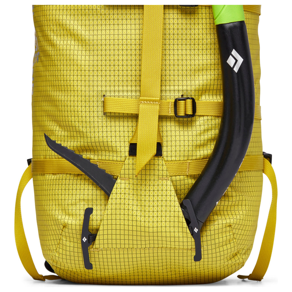 Featuring an updated BD X-rip 210d fabric with UTS™ coating, the new Speed is built to withstand season after season of mountain abuse. The pack is also fully strippable with a removable waistbelt, lid and frame-sheet, for minimalizing your set-up. We’ve improved the comfort as well with a moisture-wicking, updated back-panel and redesigned shoulder straps of dual-density foam for better load distribution on the approach while remaining streamlined on route. Ice tool PickPockets™ now feature a new custom metal dogbone ice tool attachment, boosting ice tool security, plus the snag-free crampon straps and a tuck-away rope strap secure gear to the outside. Surface-mounted glove-friendly main hood-buckles are a new addition and the drawcord skirt provides easy access and keeps out spindrift and light precip.SPECS