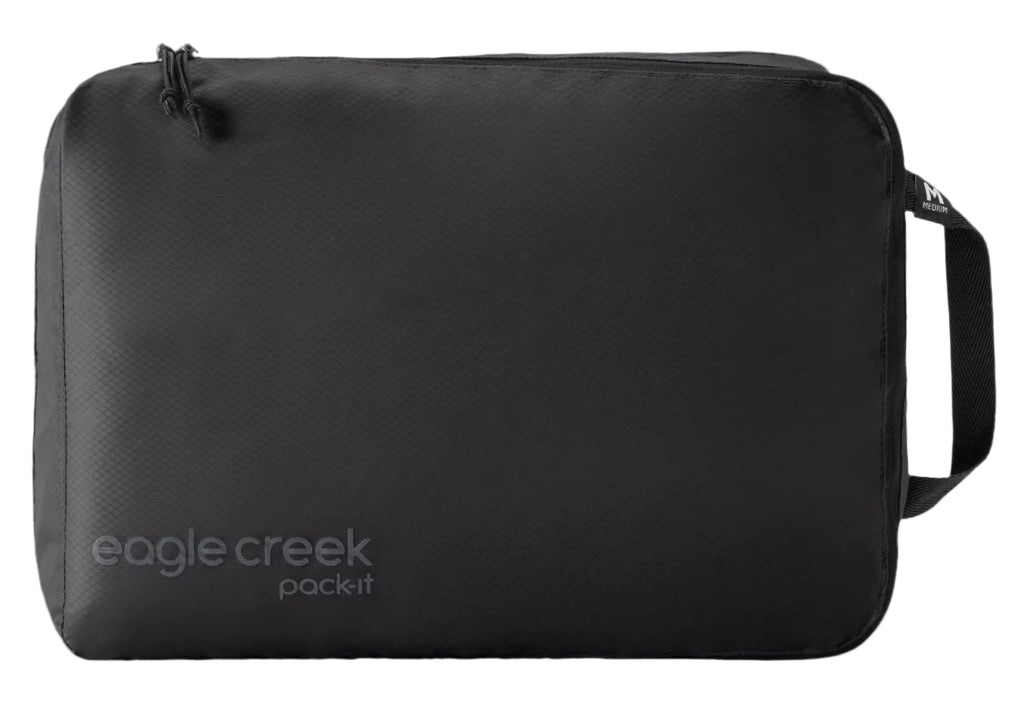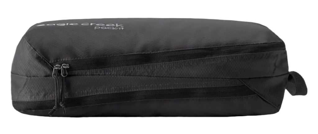 Using an internal divider to separate clean and dirty clothes, the Pack-It® Isolate Clean/Dirty Packing Cube is a semi-structured organizer that squeezes a surprising number of garments into one space-saving parcel. Its angled opening holds pants, shirts, or socks in place during packing, and the lightweight, 100% ocean-recycled fabric is water-resistant and washable.